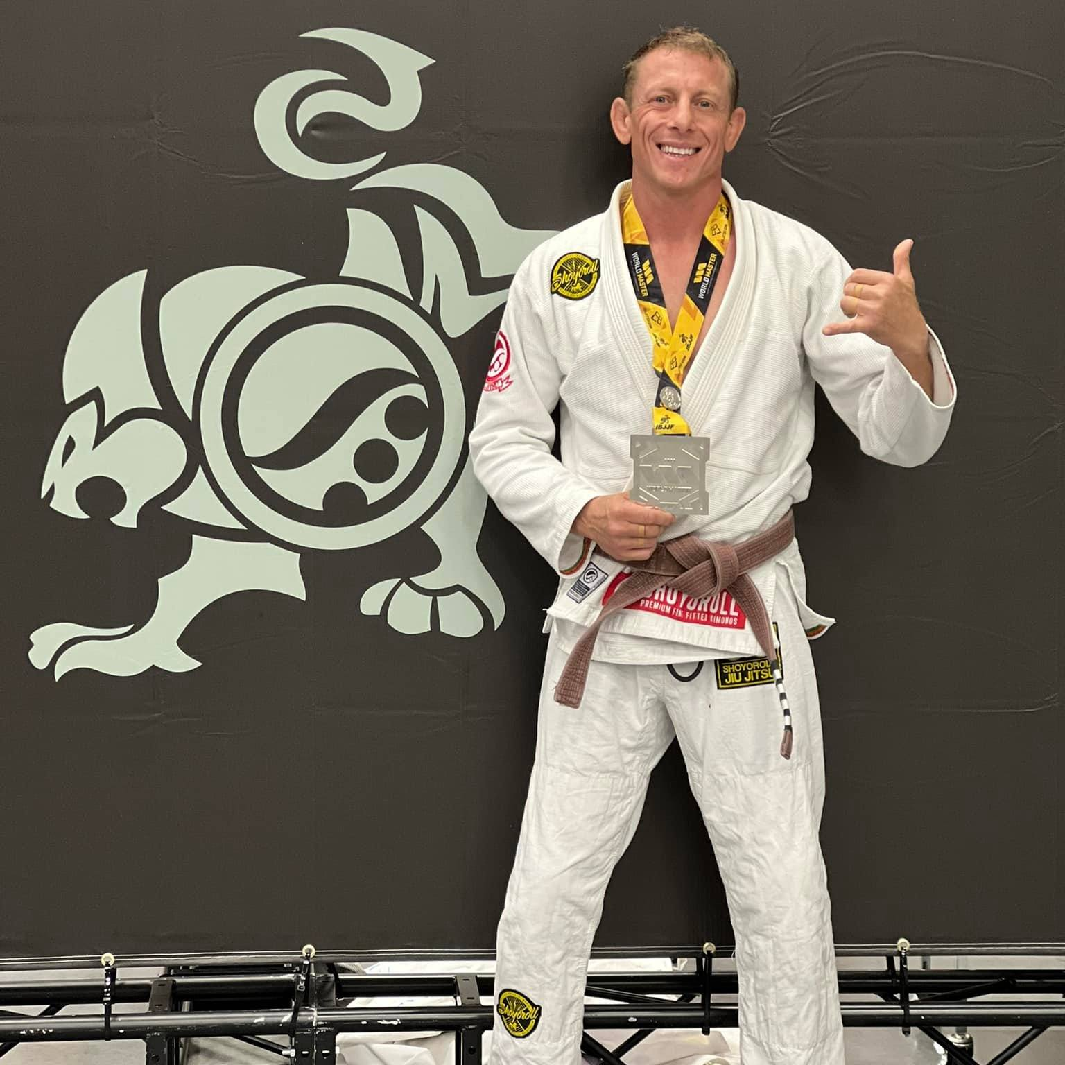 A black belt under Sensei Jaime Jara (awarded November 2023), Tim is a fierce competitor with serious hardware to back it up as a silver medalist at IBJJF Master Worlds, and champion of the Jiu Jitsu World League.